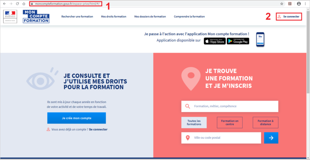 2 - Ou alors, rendez vous sur "mon compte formation" et Cliquez sur "Se connecter"