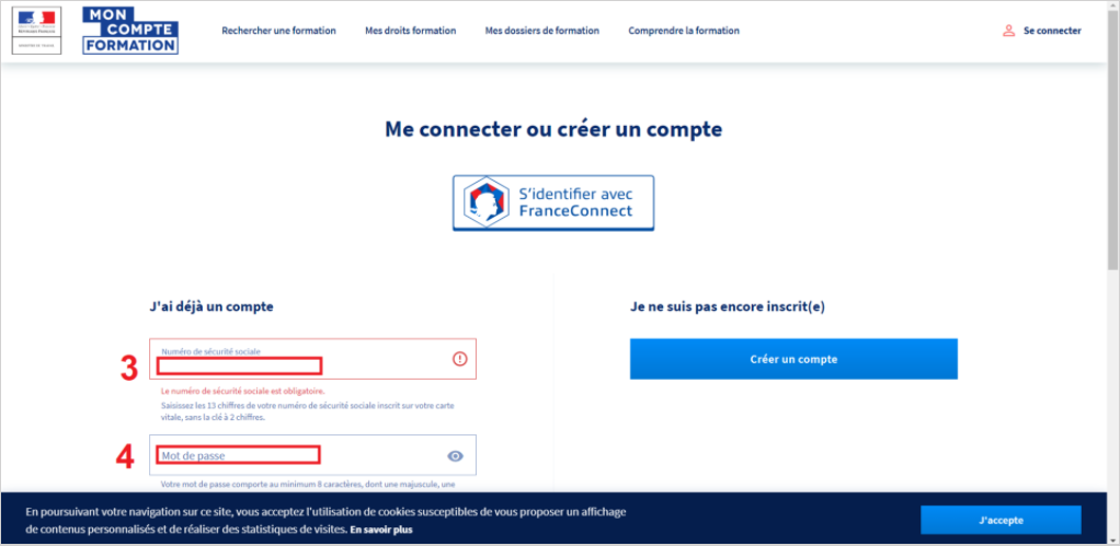 3 - Identifiez-vous avec votre numéro de sécurité sociale