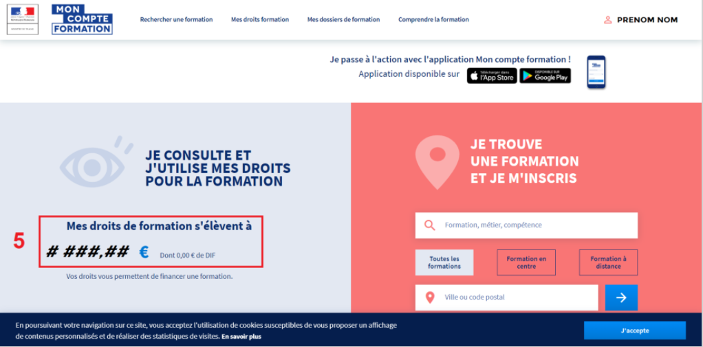 5 - Une fois identifié, vous voyez votre solde de droits de formation