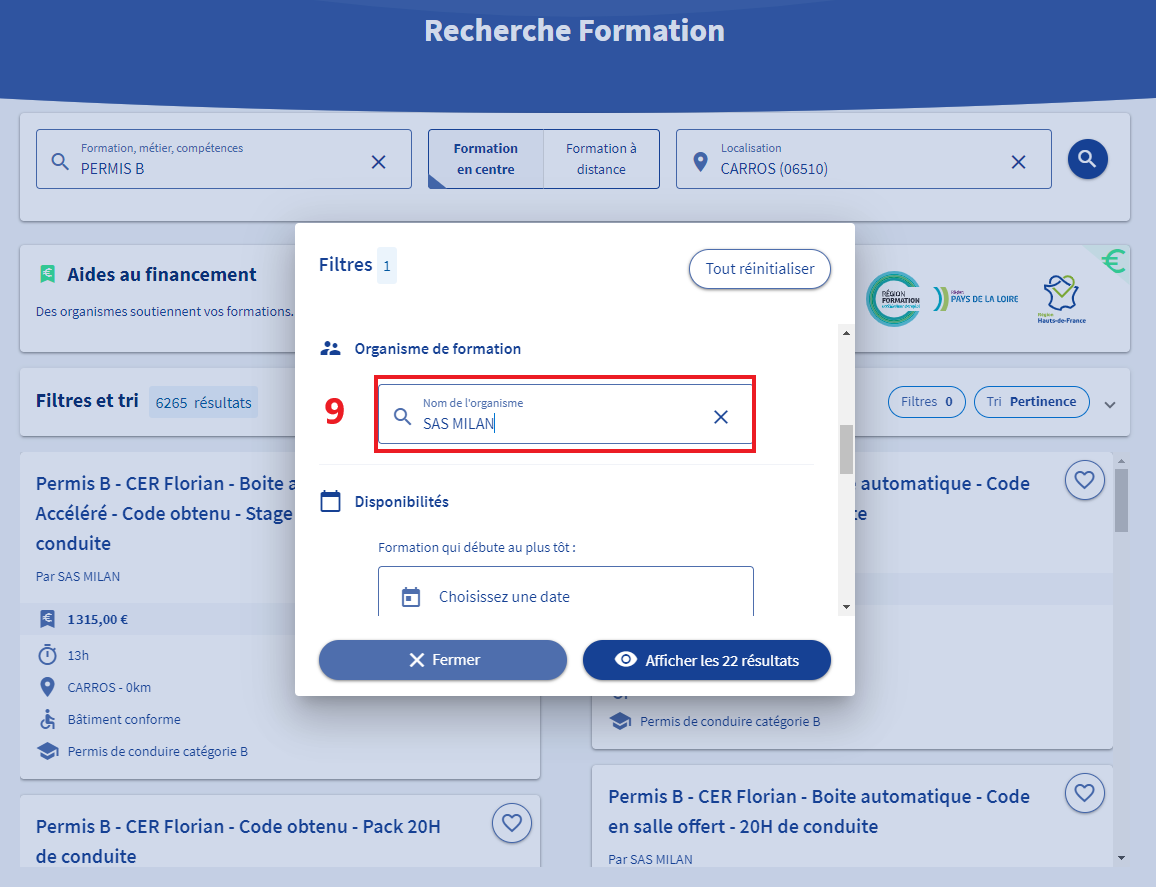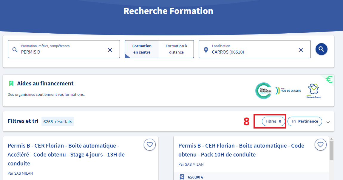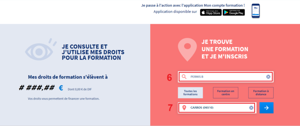 6 - Entrez "PERMIS B" dans le choix de formation
